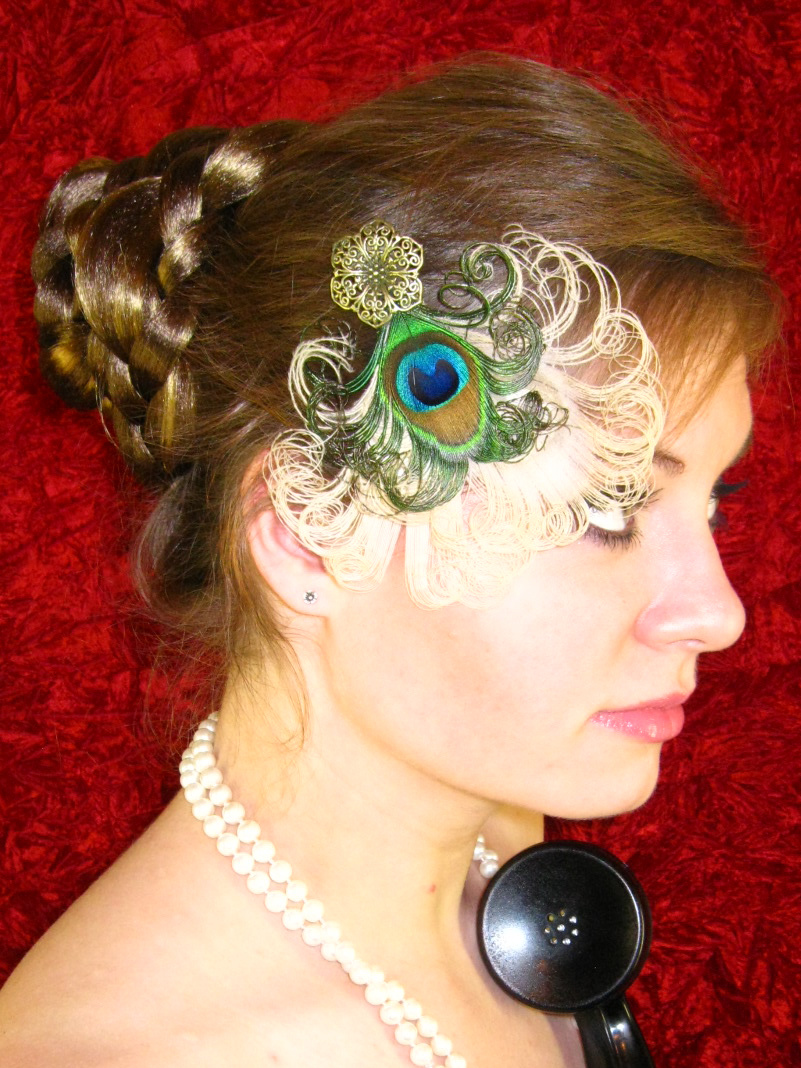 Ein paar Fotos zeigen das Haarteil in Kombination mit weiterem Haarschmuck, Fantasy Clip-Haarteilen etc. Diese Artikel müssen separat gekauft werden.