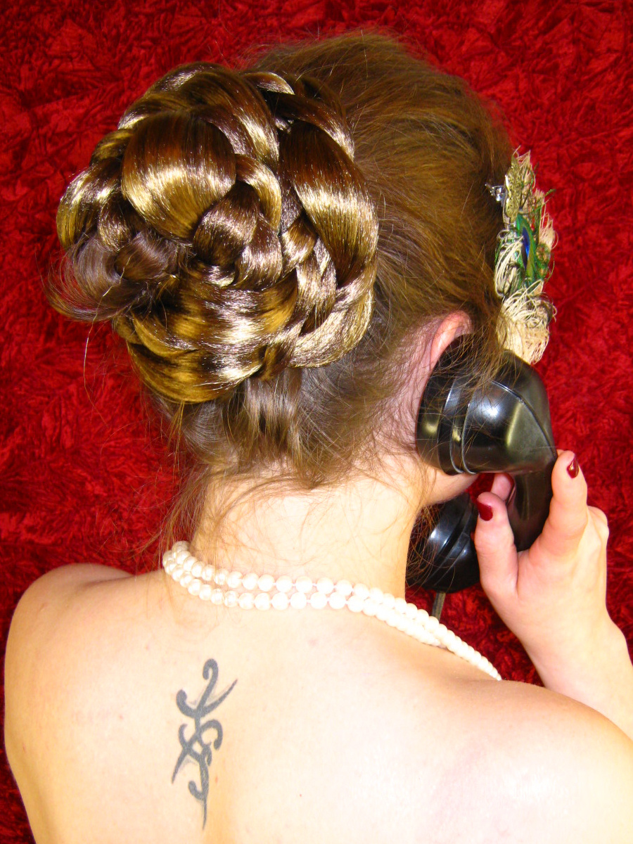 Bei der Basisbefestigung wird das Haarteil über den eigenen Zopf gezogen. Dann gibt es die Möglichkeit den Zopf mit dem eigenen Haar zu verflechten, was wir nicht empfehlen, aber dennoch bei einigen Kundinnen sehr beliebt ist. Man braucht dann zusätzlichen Haarschmuck um die Befestigung und den Bonding-Teil der Haare zu verdecken, siehe Bilder mit blonder Puppe.