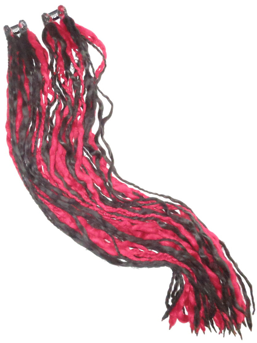 Diese Clip-In Dreadlocks sehen toll als bunte Strähnen im eigenen, langen Haar aus - einfach genial für Boho, Gothic und Steampunk Look und natürlich auch für viele Fantasy Frisuren! Schöne Effekte erzielen Sie schon mit 2 Clip-Ins. Wenn Sie eine gleichmäßige Verteilung/ Mischung der Dreads mit Ihrem eigenen langen Haar oder in einer Perücke wünschen, benötigen Sie 5 Clip-Haarteile. Sie können diese Dreads Extensions auch als Strähneneffekte für Hochsteckfrisuren und Zöpfe verwenden, die Dreads werden einfach mitgeflochten, hier genügen 2 Clip-Ins. Und nicht zaubern Sie Farbe und Effekte in alle Haarteile aus Kunsthaar, reguläre Dreadlocks- und Bänderhaarteile mit Haargummibefestigung... Dazu genügen bereits 2 Clip-In Haarteile.
