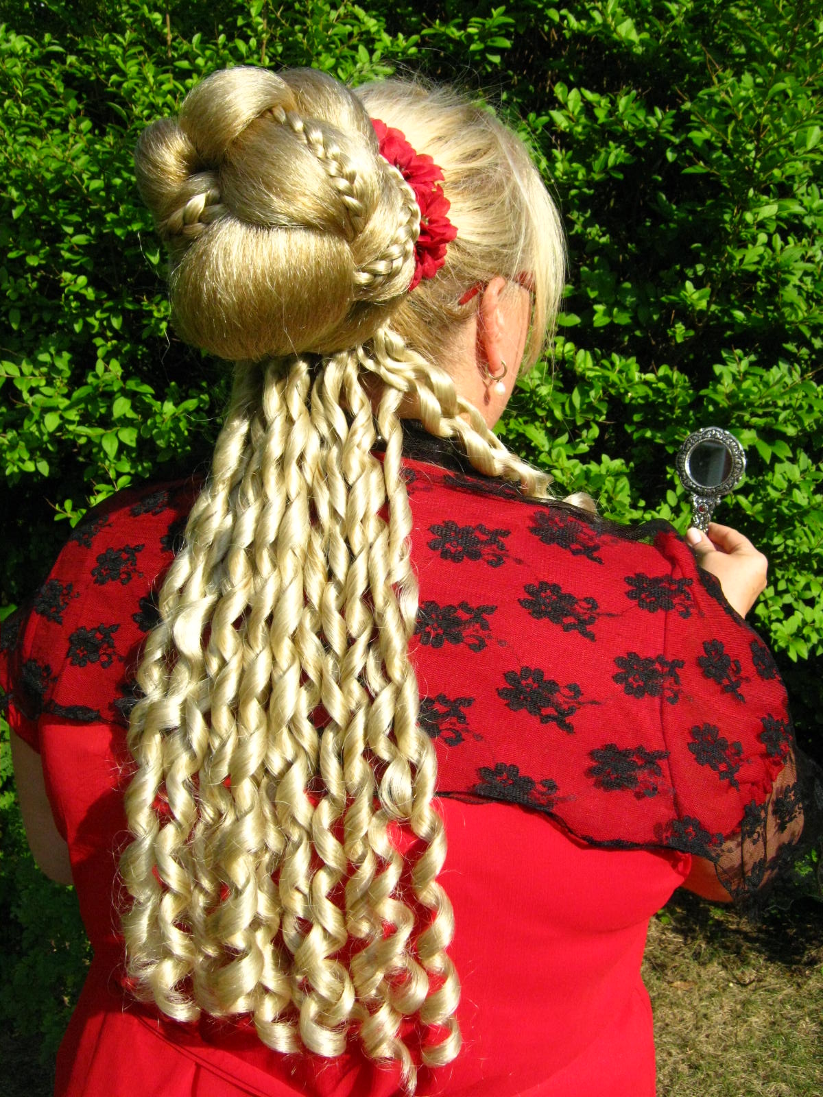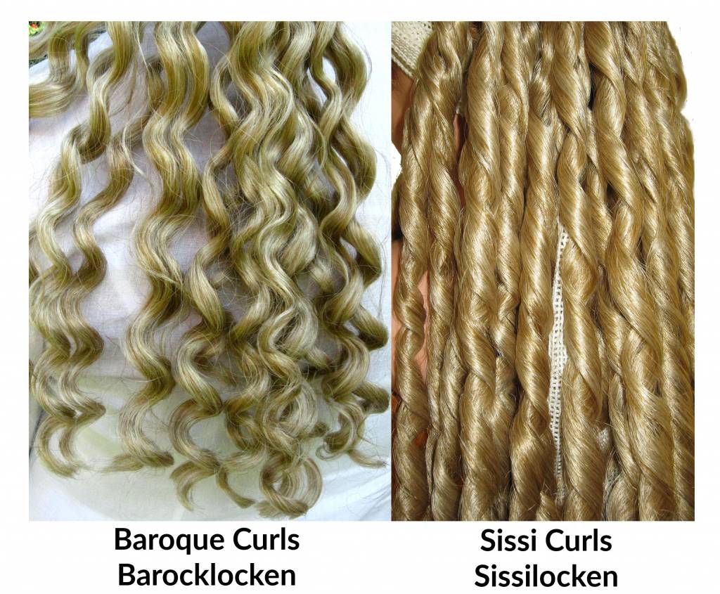 Barock- & Sissilocken sind perfekt für romantische Brautfrisuren, Hochzeiten und Bälle generell und für historische Stylings. Biedermeier, Rokoko und Viktorianische Haarprachten kommen kaum ohne diese Korkenzieherlocken aus und auch in der Steampunk und Gothic Szene sind diese nostalgischen Schillerlocken sehr beliebt!