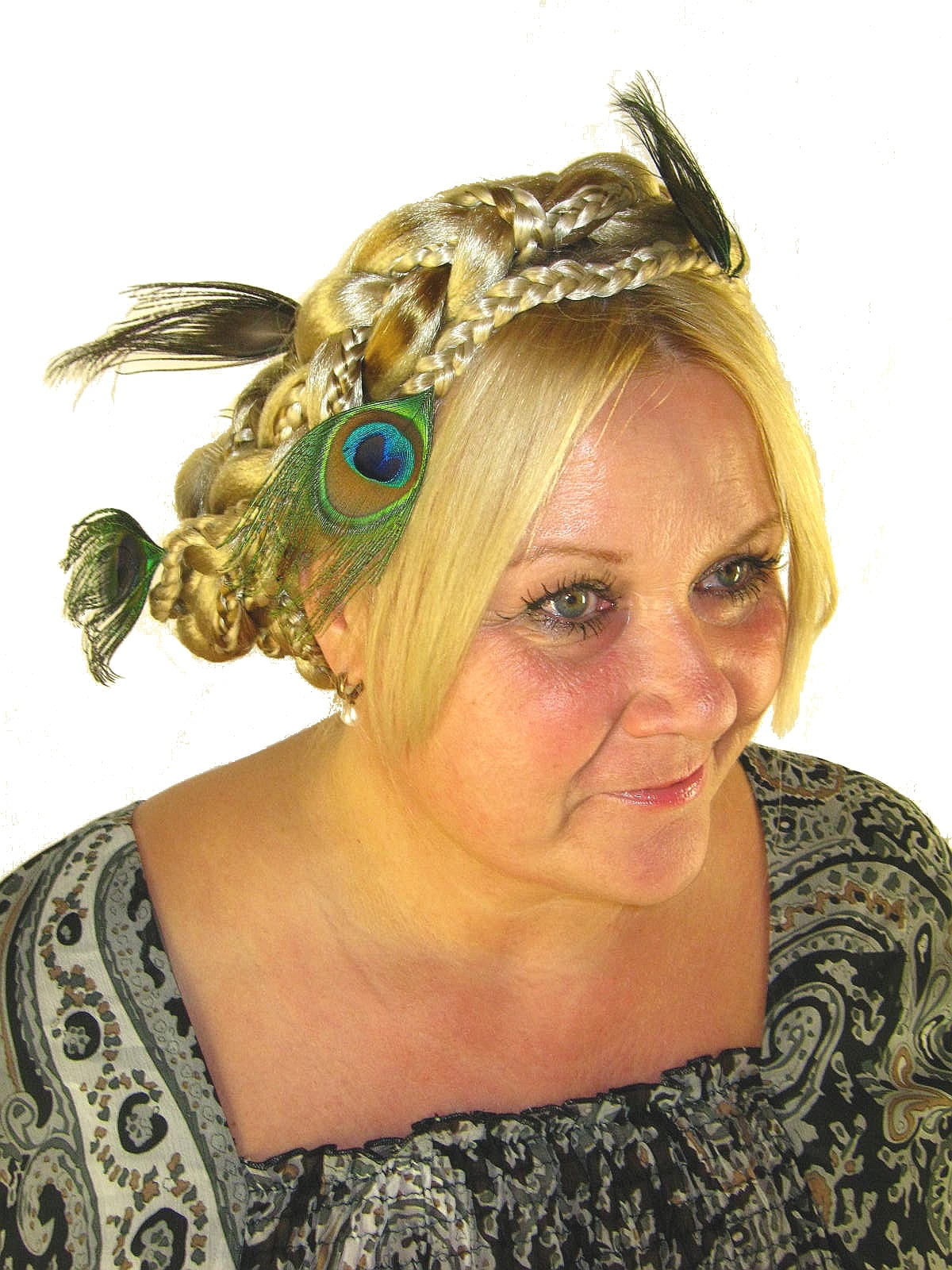 Ein paar Fotos zeigen das Haarteil in Kombination mit weiterem Haarschmuck, Fantasy Clip-Haarteilen etc. Diese Artikel müssen separat gekauft werden.