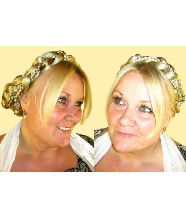Crimped hair has very small zigzag waves, hence the big volume. Crimped hair is very easy to braid and braids of crimped hair make great, voluminous buns/ chignons, too. The bun is simply made by pinning up the attached plait - just like making a bun of your own hair! Buns from hair pieces of crimped hair are bigger and more fluffy than buns of all other hair textures!