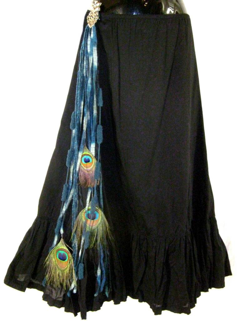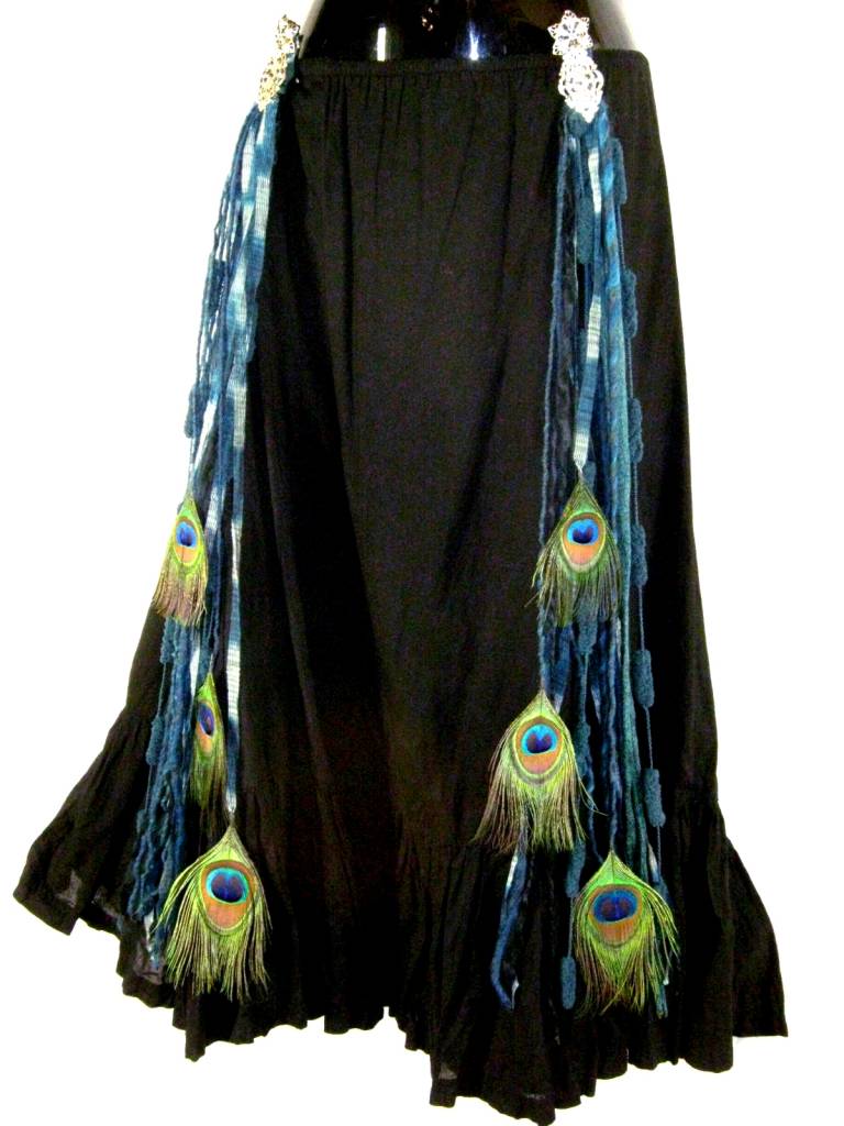 These hip & hair tassels are multi-purpose yarn falls - wear them as hair falls or use them on your Goth, steampunk or your belly dance skirt or pants or clip them onto your tribal fusion belt. A pair of these hip & hair tassels combined with some hair flowers, cowry hair jewelry and peacock fascinators make a great and versatile headpiece for tribal fusion belly dance (most belly dancers use hair scarves to attach the single pieces of hair jewelry more easily). Since the single components of such a tribal fusion headpiece are not glued together, you can mix and match them single and with other outfits and costumes, too. Use this versatility to get creative and mix your own belly dance, fantasy larp and cosplay costume accessories!